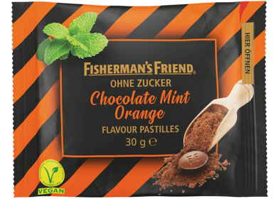 Schokoladengenuss in jeder Situation - und das ganz ohne schlechtes Gewissen, denn Chocolate Mint ist vegan und ohne Zucker! Die unwiderstehliche Kombination von echtem Kakaopulver und frischer Minze, vereint in unserer ikonischen Fisherman's Friend Pastille, ist in der wieder verschließbaren Ziplock-Verpackung immer und überall dabei.