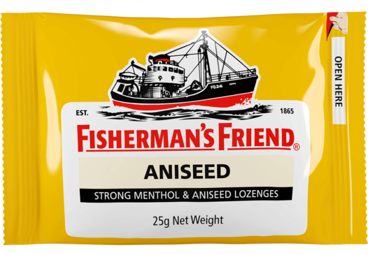 Aniseed-lovers are a patient lot. How do we know? Because they had to wait a whopping 110 years: Aniseed was the second flavour that Fisherman’s Friend launched into the market after the original flavour from 1865. But the long wait was totally worth it: The incomparable Aniseed aroma continues to inspire enthusiasm and fresh breath. Sometimes the second idea is just as good as the first.