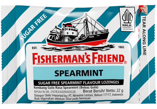 Kalau kamu suka mint, tapi tidak pernah merasa cukup dengan rasa mint yang sudah ada di hidupmu, kami punya penyegar napas terdepan: Fisherman’s Friend Spearmint. Enak, rasa spearmint yang intens, tidak terlalu kuat tapi menyegarkan seperti pancuran di saat hujan. Dikurangi payung. Jam 6 pagi. Di bulan Mei. Menggunakan kaus. Telanjang kaki.